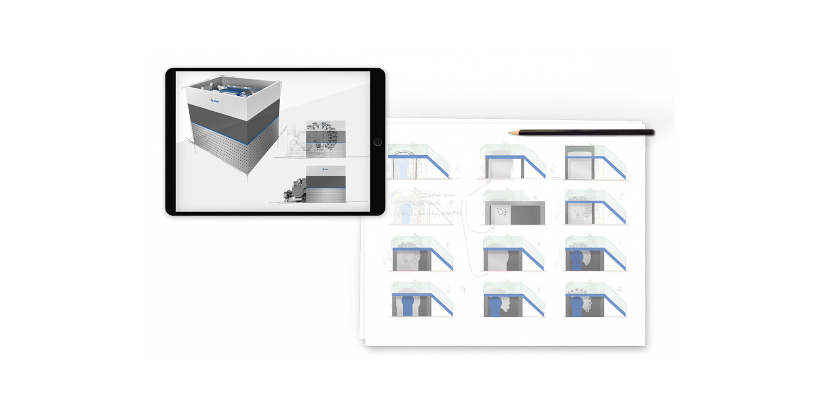 Vom Entwurf bis zum fertigen Designkonzept. In der Phase der Ideenfindung erarbeiten wir verschiedene Entwürfe und Ideen, die wir mit dem Kunden gemeinsamen bewerten und schließlich Favoriten auswählen. Die Favoriten werden weiter in Iterationen ausgearbeitet und letztendlich wird ein konkretes Konzept finalisiert.