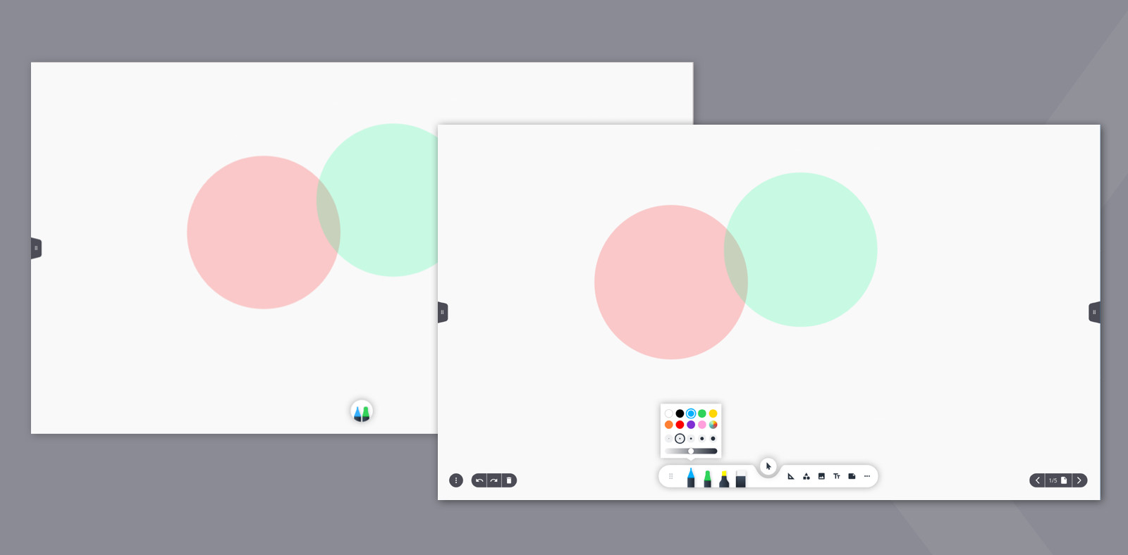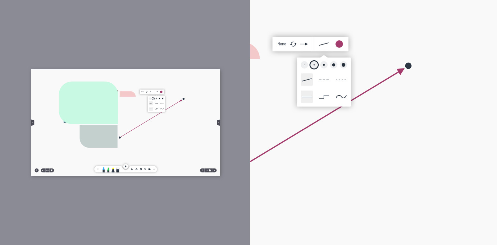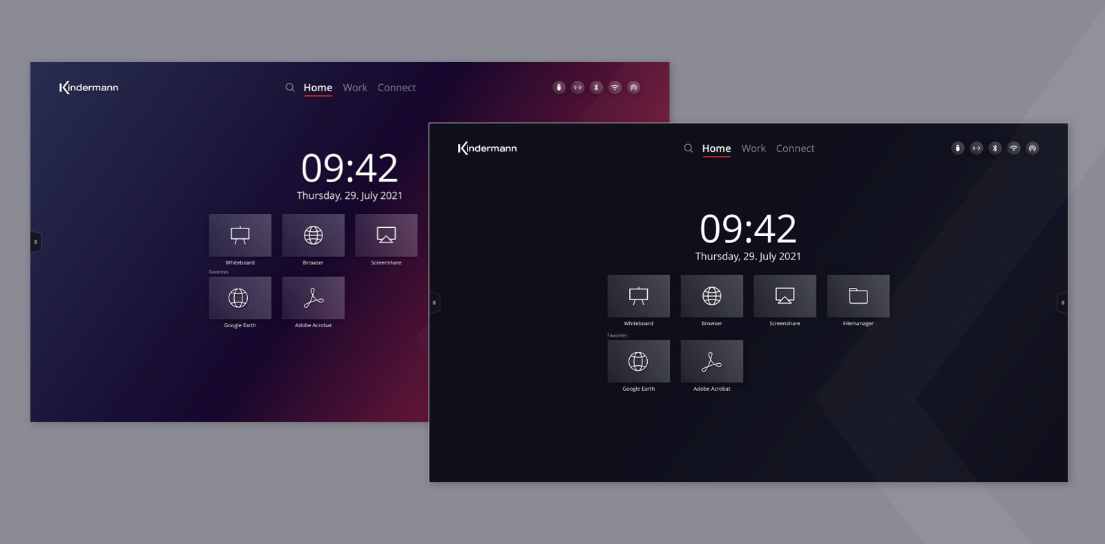 We positioned important information on the top edge of the display so that it is not obscured. To make users feel comfortable from the first use, we chose familiar icon methapers and interaction patterns. For the new whiteboard app, for example, we developed a toolbar that makes drawing and layout tools intuitively usable.